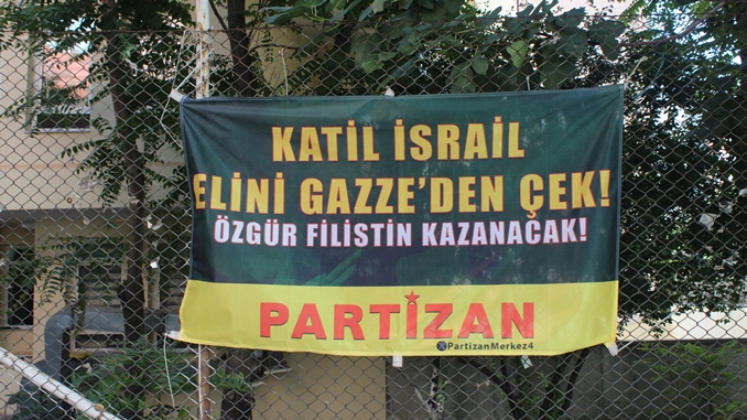 Partizan Ankara’da “Katil İsrail Elini Gazze’den Çek! Özgür Filistin Kazanacak!” pankartı astığını duyurdu.