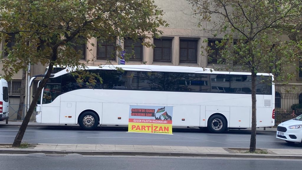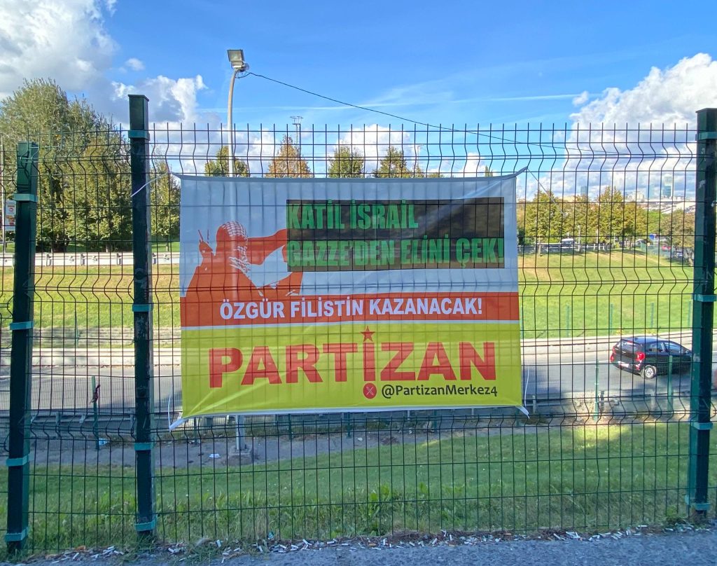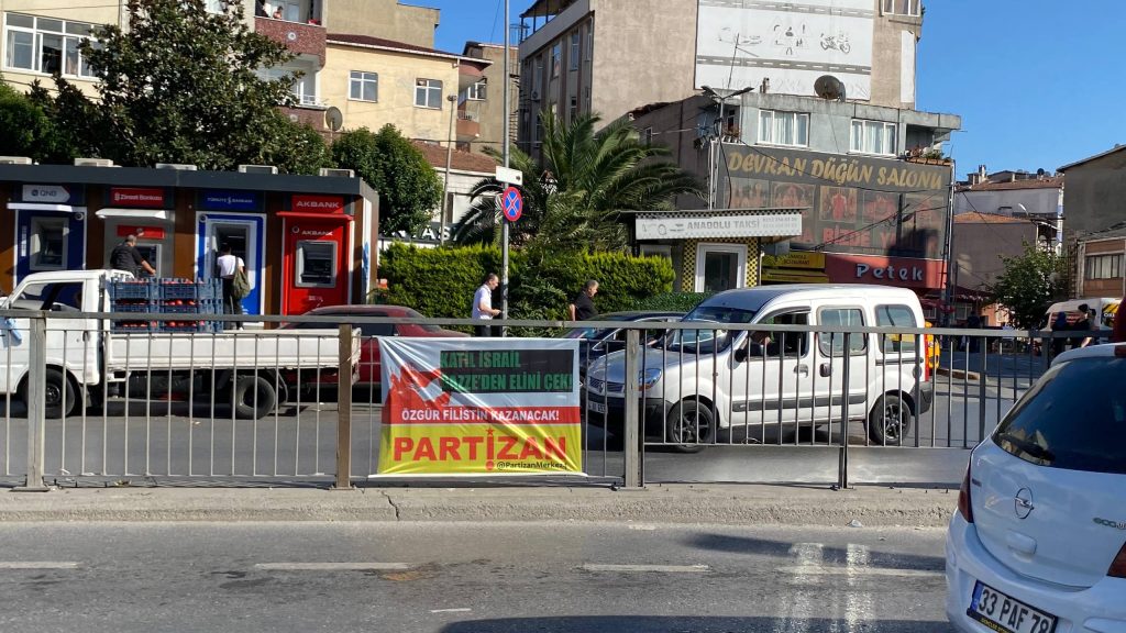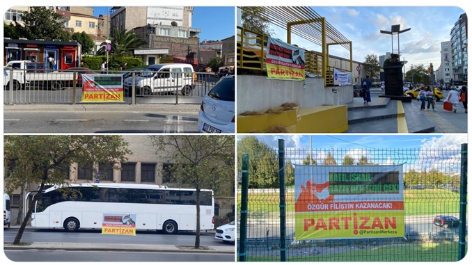 Partizan X Hesabı’ndan (@PartizanMerkez4) yaptığı paylaşımda, İstanbul Okmeydanı ve Harbiye’de pankartlar astığını duyurdu ve “İsrail, ABD ve İngiliz emperyalizmin Ortadoğu’daki ileri karakolu olma misyonuyla 80 yıldır halklara kan kusturuyor Emperyalizm ve Siyonizm ve işbirlikçileri yenilecek! Özgür Filistin kazanacak! AKM’den Dolmabahçe’ye Yürüyoruz 5 Ekim Pazar Saat: 15.00” ifadelerini kullanarak, 5 Ekim’de İstanbul AKM’den Dolmabahçe’ye yürüyüşü çağırdı.